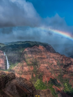 必应壁纸:威美亚峡谷和怀波奥瀑布上空的彩虹,考艾岛